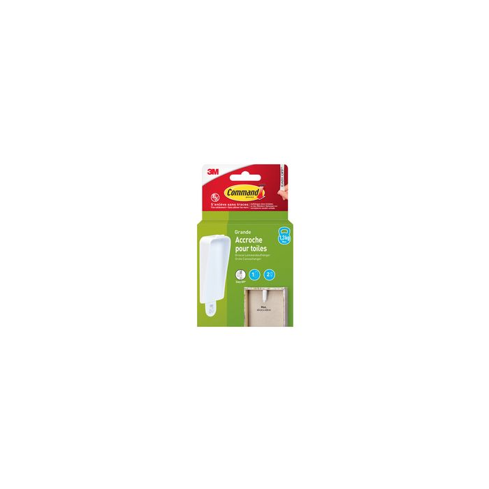 3M Command Accroche pour toiles jusqu'à 450 x 600 mm capacité de charge: 1,3 kg, forte adhérence, s'enlève sans laisser de traces, utilisation simple, plastique, blanc contenu: 1 crochet + 2 languettes adhésives taille L (17044WHI-1-FGN / 7100337112)