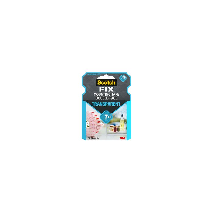 3M Ruban adhésif de fixation Scotch-Fix transparent 19 mm x 5 m, supporte jusqu'à 7 kg, adhésif en permanence, idéal pour fixer le verre, le carrelage et les oeuvres d'artrésistant aux rayons UV et aux températures de 0 à 40 degréspour une utilisation en intérieur (4910C-1950-P)