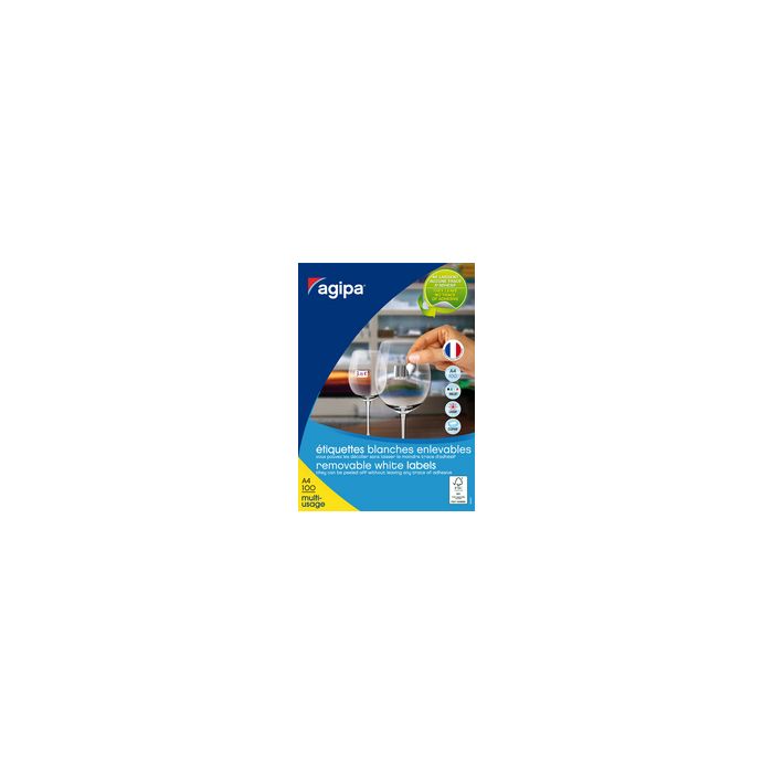 agipa Etiquette universelle, 210 x 297 mm, blanc adhésif enlevable, coins droits, pour imprimante jet d'encre/laser et photocopieuse, contenu: 100 étiquettes sur 100 feuilles A4 (128993)