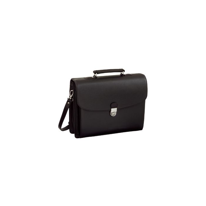 Alassio Porte-documents "FORTE", similicuir, noir bandoulière amovible, compartiment avec fermeture à zip à l'arrière, intérieur: 5 compartiments pour formats A4, compartiment principal avec 3 passants pour stylos, compartiments pour cartes de visites, dimensions externes: (L)400 x (P)120 x (H)330 (92011)