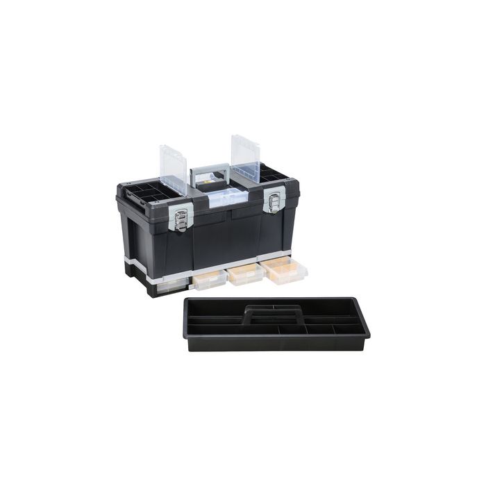 allit Boîte à outils McPlus Depot >S< 23, PP, noir non équipé, casiers de tri dans le fond et dans le plateau amovibles, porte-embouts & forets dans le couvercle, plateaude transport mobile, fermetures métalliques, dimensions extérieures : (L)580 x (P)280 x (H)330 mm (476320) dimensions utiles : (L)485 x (P)210 x (H)160 mm