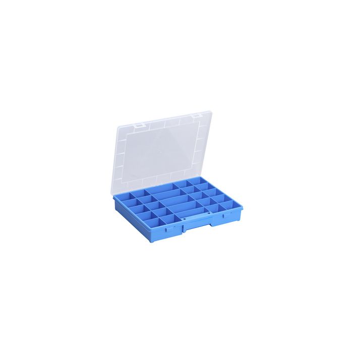 allit Boîte d'assortiment "EuroPlus Basic", bleu taille: 37/25, polypropylène transparent résistant aux chocs25 casiers, compartimentage fixe, rangement sécurisé : compartiments fermés hermétiquement grâce au couvercle dimensions : (L)370 x (P)295 x (H)60 mm (457250)