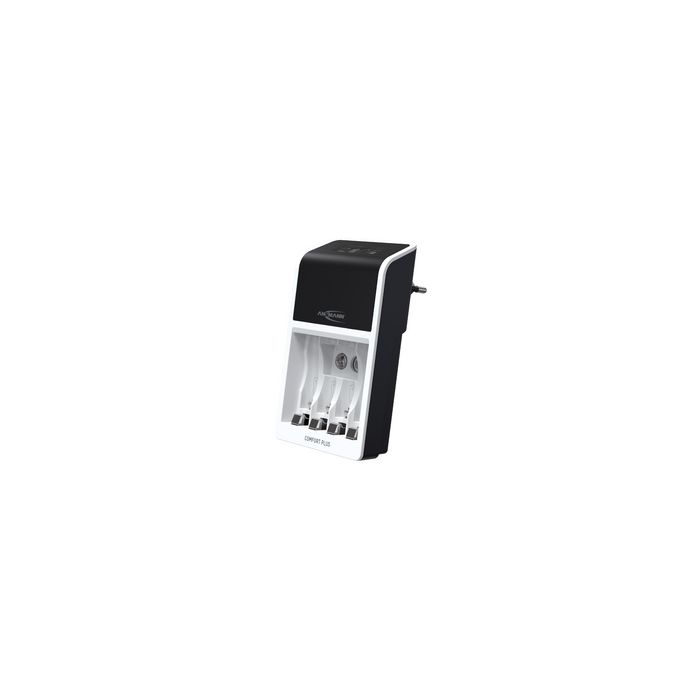 ANSMANN Chargeur rapide Comfort Plus, livré avec 4 piles pour 1 à 4 piles rechargeables Micro AAA, Mignon AA ou 1 à 2Micro AAA, Mignon AA et une pile rechargeable 9V, test rapide de capacité, chargement préalable doux, analyse des piles, mode de chargement rapide, coupure IQ, (1001-0094-01) chargement Top-Off, charge d'entretien, fiche Euro, couleur: blanc/noir, livré avec 4 piles AA Mignon 2.100 mAh