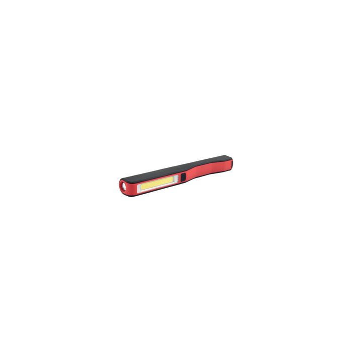 ANSMANN Lampe d'inspection LED "IL150B", avec aimant aimant de fixation intégré dans le clip réglable, technologie COB-LED, alimentation: 3x Micro AAA, intensité: 3 W, portée: 16 m, durée de fonctionnement: 20 h, rendement lumineux: 150 Lumen, puissance lumineuse: 250 Lux, IP54 (1600-0211) couleur: noir / rouge, dimensions: (L)185 x (P)35 x (H)20 mm contenu de la livraison: Lampe d'inspection LED, 3 x piles Micro AAA