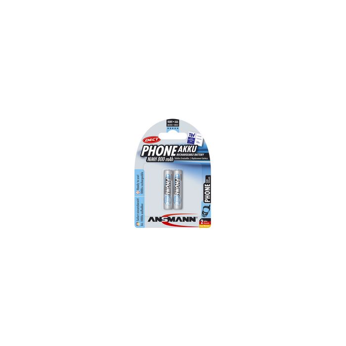 ANSMANN NiMH maxE DECT blue, Micro AAA, 800 mAh, blister 2 pour téléphones sans fil (DECT), pas d'effet mémoire contient: 2 piles (5035332)