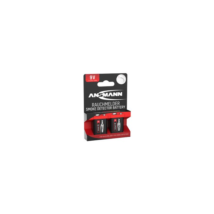 ANSMANN Pile alcaline, E-bloc 6LR61, 9 Volt, blister de 2 spécialement conçu pour les détecteurs de fumée, largeur: 26,5 mm, profondeur: 17,5 mm, hauteur: 48,5 mm, 600 mAh, contient: 2 piles (1515-0006) en blister