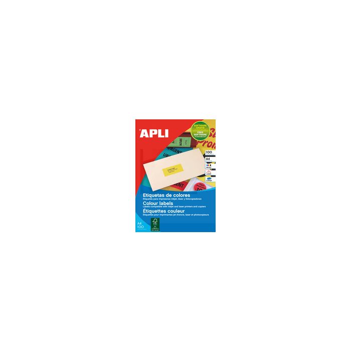 APLI Etiquette d'adresse, 70 x 35 mm, vert fluo coins droits, non détachables, pour imprimantes jet d'encre/laser et photocopieuses contenu: 2.400 étiquettes sur 100 feuilles A4 (100766)