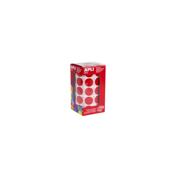 APLI Kids Gommette de couleur en rouleau, rouge en papier, adhésif permanent, 59 feuilles séparées par une prédécoupe microperforée pour les détacher facilement, 30 gommettes par feuille, diamètre: 20 mm contenu: 1.770 gommettes (4861)