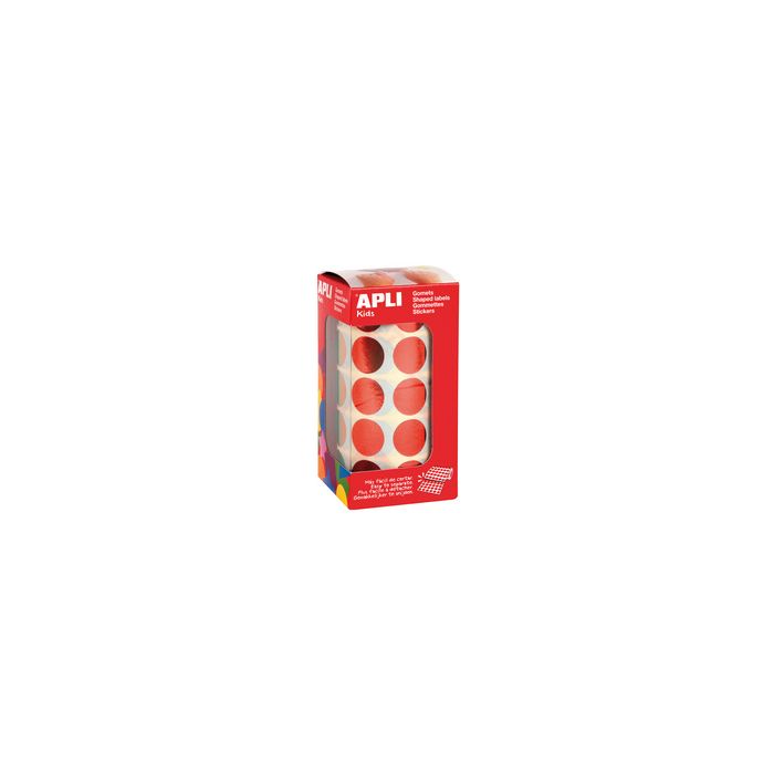 APLI kids Gommettes "Rond" en rouleau, rouge métallisé en papier, permanent, sur feuilles prédécoupées, diamètre: 20 mm contenu: 1.770 gommettes (12049)