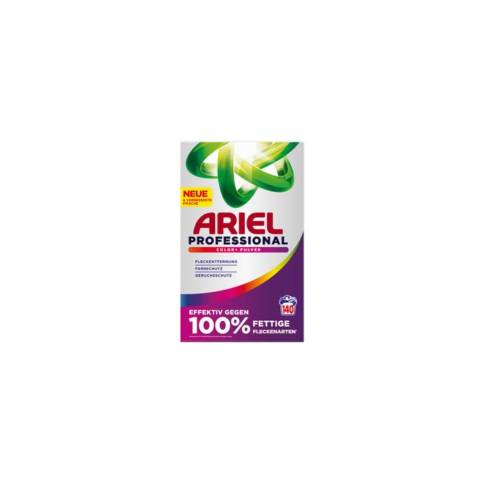 ARIEL PROFESSIONAL Lessive en poudre Color+, 140 lavages combat toutes les taches de gras, lavage impeccable en 1 seul cycle, même à 30 degrés, protection anti-odeurs, à usage professionnel (8006530213417)