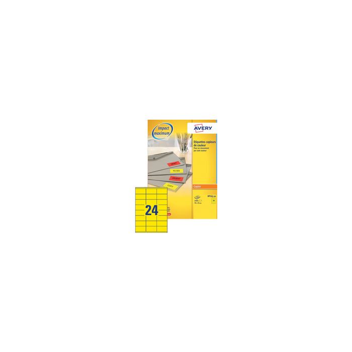 AVERY Etiquette d'adresse, 70 x 35 mm, rouge fluo pour photocopieur monochrome haute cadence, gros volumes contenu: 2.400 étiquettes sur 100 feuilles A4 (DP24R-100.FR)
