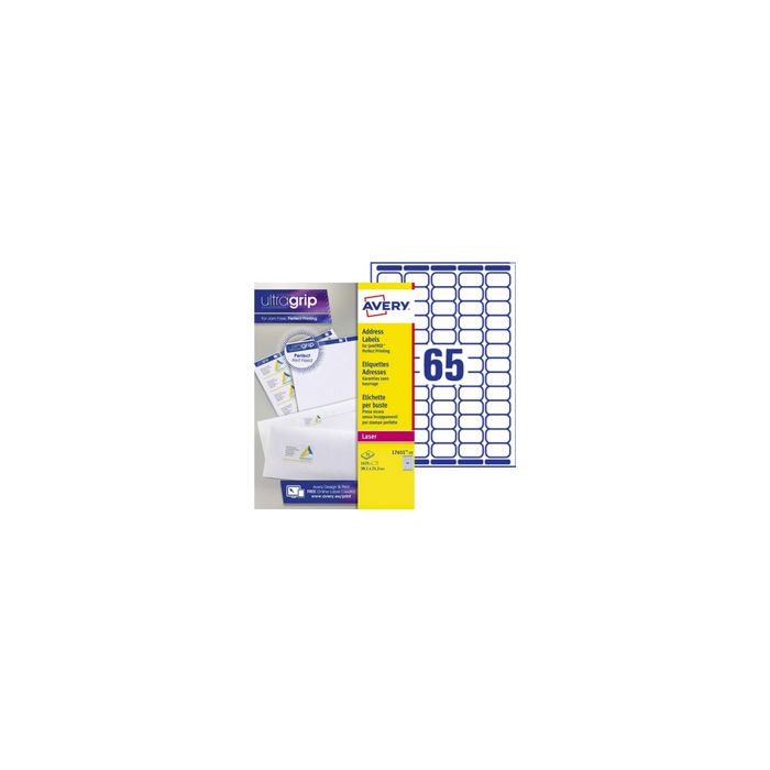 AVERY Mini étiquette d'adresse laser, 38,1 x 21,2 mm, blanc étiquettes d'organisation et classement, bord arrondi, pour imprimante laser contenu: 1.625 étiquettes sur 25 feuilles A4 (L7651-25.FR)