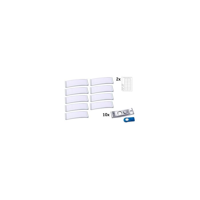 AVERY Zweckform Badge, 68 x 22 mm, set de 10, argent série polar "classic", porte-nom stable, grand confort, carte blanche, unie, pour imprimante jet d'encre ou laser, porte-nom en plastique aspect inox contenu: 10 porte-nom incl. aimant et cartes (POL20MA66-10DR) série polar classic 20