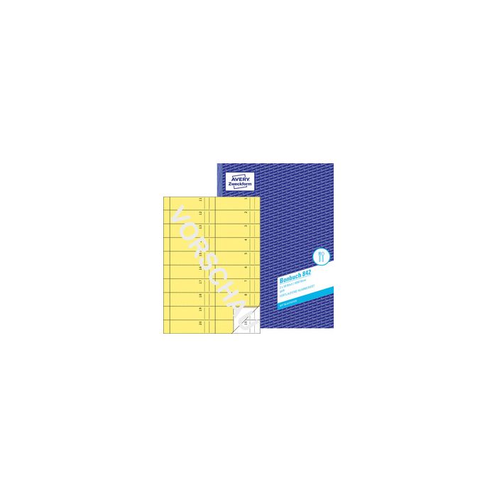 AVERY Zweckform Formularbuch "Bonbuch", A4, gelb ----------------- für den Markt: D / L / A -----------------1-1.000 Bons, fortlaufend nummeriert, 1. und 2. Blatt bedruckt, Abrisse mikroperforiert Inhalt: 2 x 50 Blatt (842)