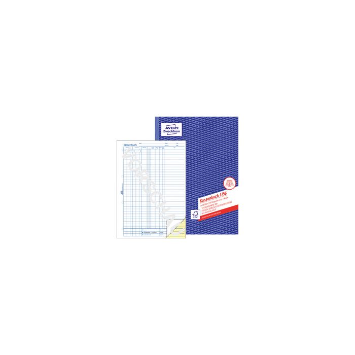 AVERY Zweckform Formularbuch "Kassenbuch", SD, A4 --------------------- für den Markt: D ---------------------2 x 40 Blatt, 1. und 2. Blatt bedruckt, selbstdurch- schreibend (1756)