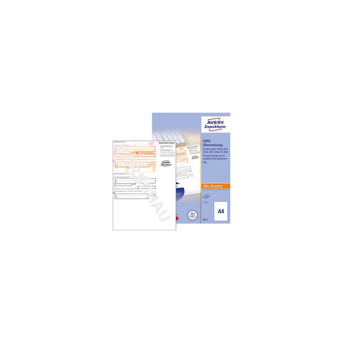 AVERY Zweckform Vordruck "Sepa-Standardüberweisung", DIN A4 ------------------ für den Markt: D -----------------------PC-Druckerformular beinhaltet: 200 Stück (2817-200)