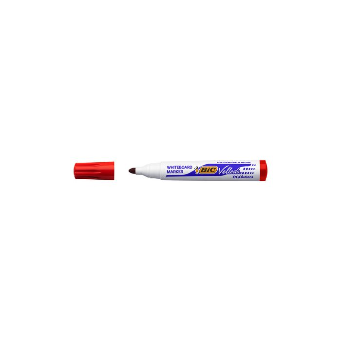 BIC Marqueur tableau blanc Velleda 1701 ECOlutions, rouge pointe ogive, largeur du tracé: 1,4 mm, couleur du corps: blanc, capuchon et embout à la couleur de l'encre, corps en plastique sans PVC, en matière recyclée à 51 %, effaçable à sec, pointe bloquée solide, faible odeur (ancien: 1199170103/ nouveau: 904939)