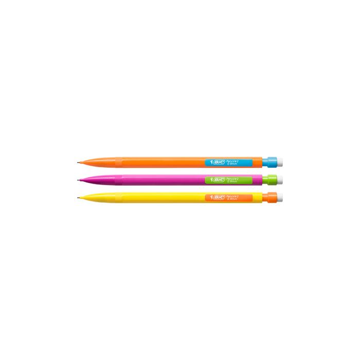 BIC Porte-mines Matic STRONG, épaisseur de mine: 0,9 mm sortie de mine grâce au dispositif poussoir, gomme intégrée,mine solide ultra épaisse, 3 mines (HB) incluses, assorti dans les couleurs de manche: rose, orange, jaune, avec clip en couleur, pas de choix de couleur spéciale (892271)