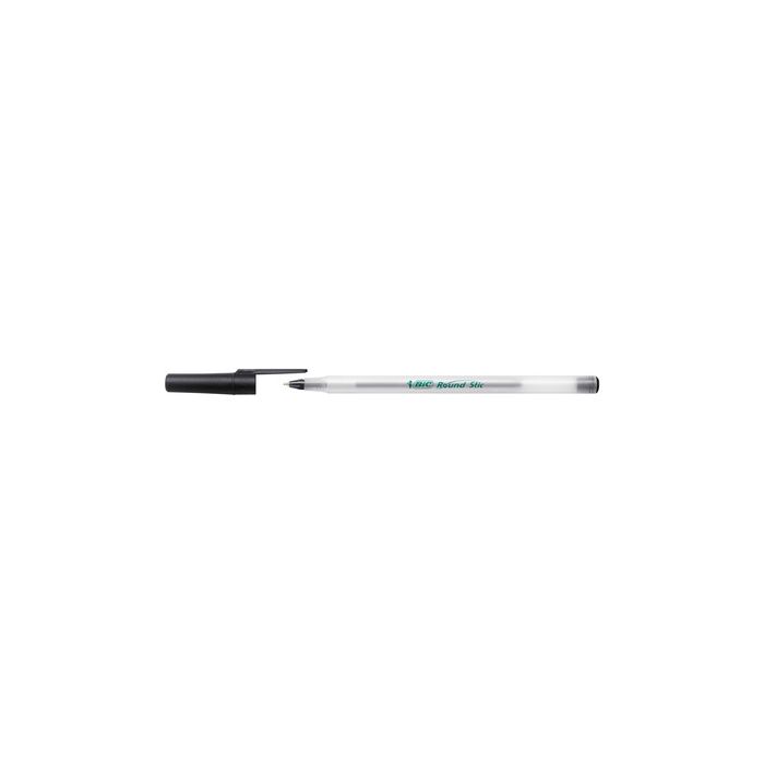 BIC Stylo à bille ECOlutions Round Stic, noir largeur du tracé: 0,32 mm, manche transparent glacial, capuchon et embout à la couleur de l'encre, en matière recyclée à 74 %, encre inaltérable (893239 / nouveau: 8932392)