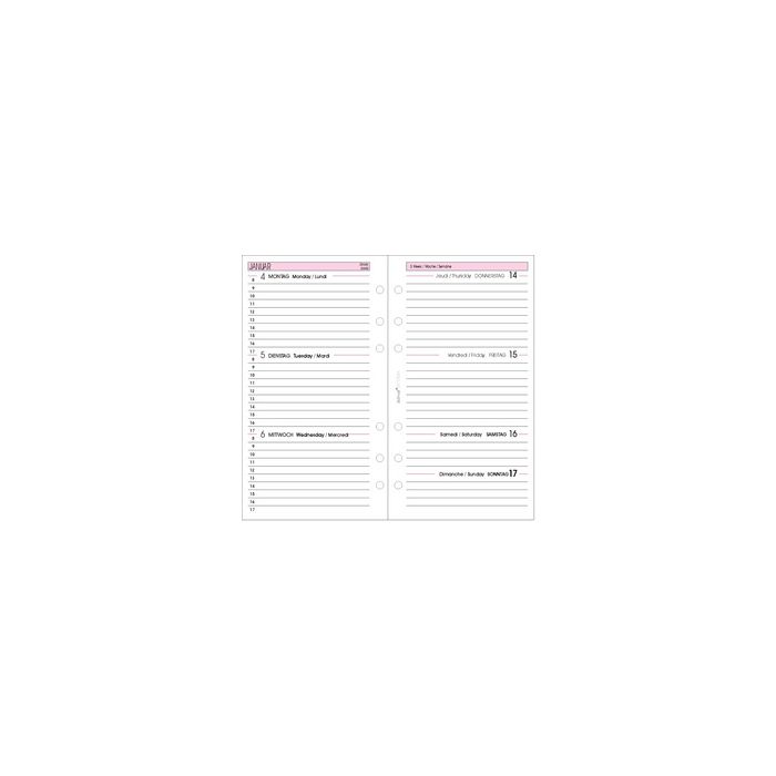 bind Recharge 2026 pour agenda A6 modèle 10603 T1/T10/T50/10100/10101/10603, semainier: 1 semaine sur 2 pages, couleur d'impression: noir / rouge, 3 langues: allemand, anglais, français (B260226)