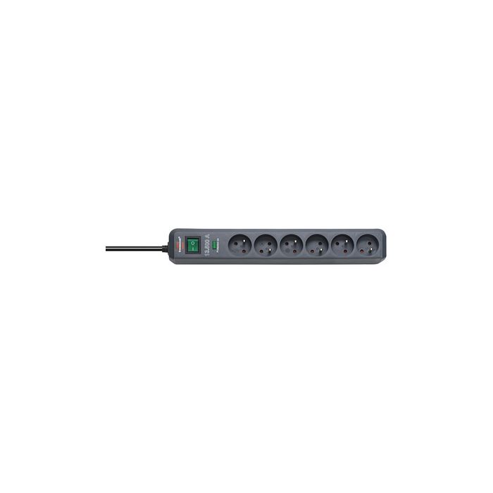 brennenstuhl Prolongateur multiprise "Eco-Line", 6 prises --------------------- pour le marché: F --------------------anthracite, protection contre la surtension jusqu'à 13.500 Ainterrupteur lumineux, en matière isolante moulée, longueur du bloc: 375 mm, longueur du câble: 1,4 m (1159291136) prise orienté à 45 degrés, avec protection enfants