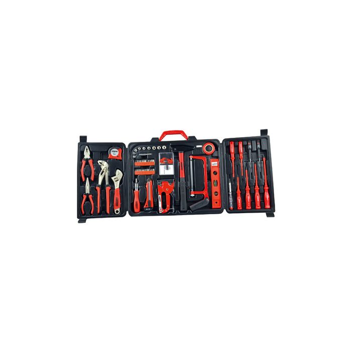 BRÜDER MANNESMANN Jeu d'outils, 60 pièces, coffret pour installation murale, poids: 3.600 g, contenu: 1 x pince universelle / 1 x pince téléphone / 1 x pince pour pompe à eau / 1 x clé à molette / 1 x mètre ruban / 1 x porte embouts / 1 x agrafeuse / 1 x cliquet (29065)