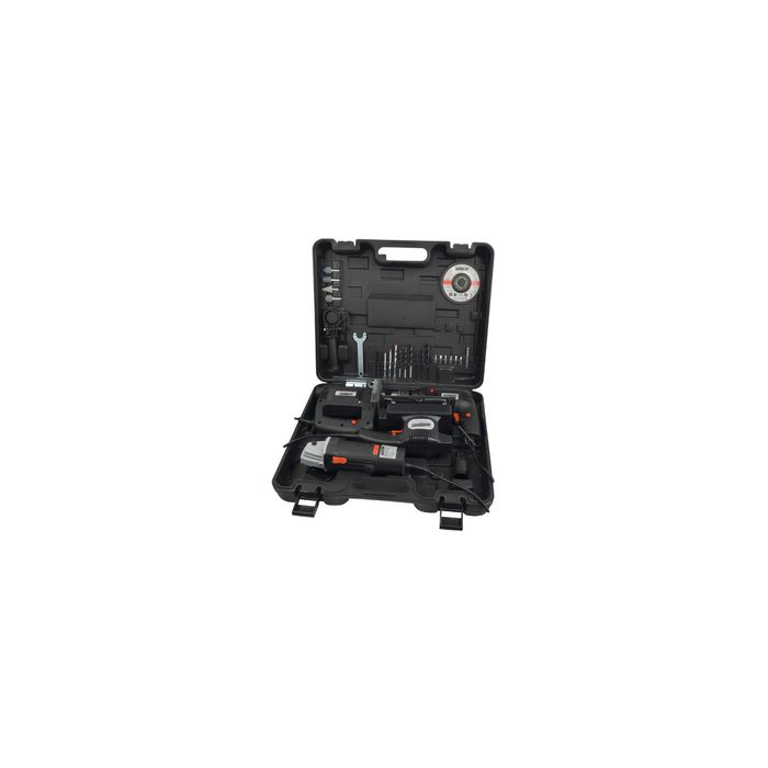 BRÜDER MANNESMANN Kit d'outils électroportatifs, 4 pièces dans une malette: perceuse à percussion, scie sauteuse, ponceuse vibrante, meuleuse d'angle une main, 9x forets, 6x embouts, 1x porte-embouts, 4x tige de corindon, 2x lame de scie, 5x papier à poncer, 1x disque à dégrossir (M12555) dimensions de la malette: (L)532 x (P)442 x (H)136 mm, couleur: noir