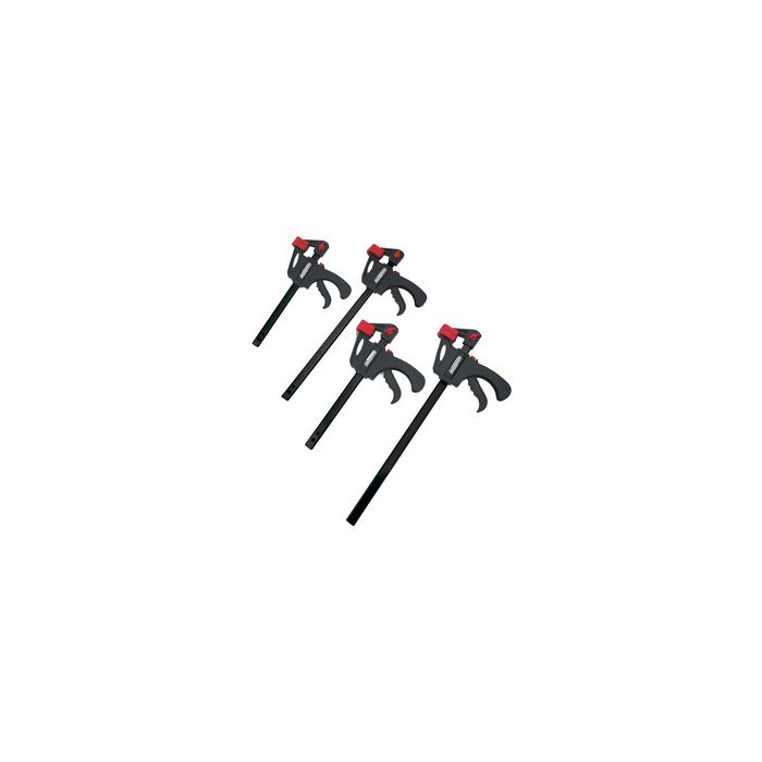 BRÜDER MANNESMANN Serre-joint, 4 pièces grande pression d'appui, poids léger, glissière en acier zinguée, bras de serrage plastique renforcé de nylon, 2 serre-joints env. 150 mm d'écartement, 2 serre-joints env.300 mm d'écartement (M90304)
