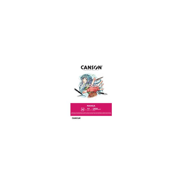CANSON Bloc de dessin GRADUATE Manga, A4 blanc, 30 feuilles, 200 g/m2, lisse, bloc collé sur le petitcôté, sans acide, convient à la création de manga (C31250P030)