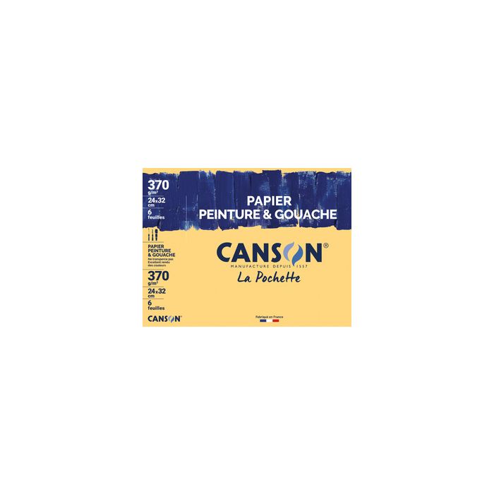 CANSON Papier à dessin Peinture et Gouache, 320 x 240 mm 370 g/m2, blanc naturel, grain léger, idéal pour la gouache ou l'aquarelle, ne transperce pas, ne gondole pas, dans une pochette contenu: 6 feuilles (C400065406)