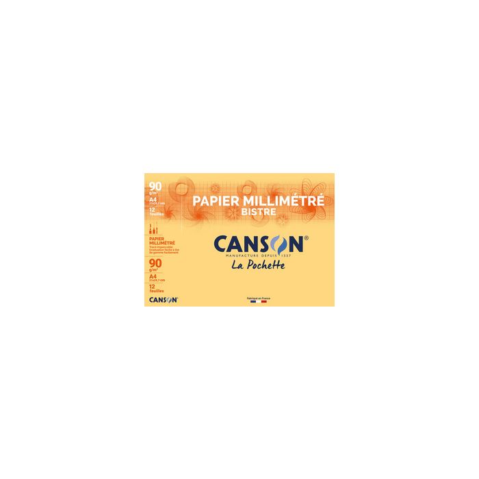 CANSON Papier millimétré, A4, 90 g/m2, couleur: bistre dans une pochette contenu: 12 feuilles (67115 / C200067115)