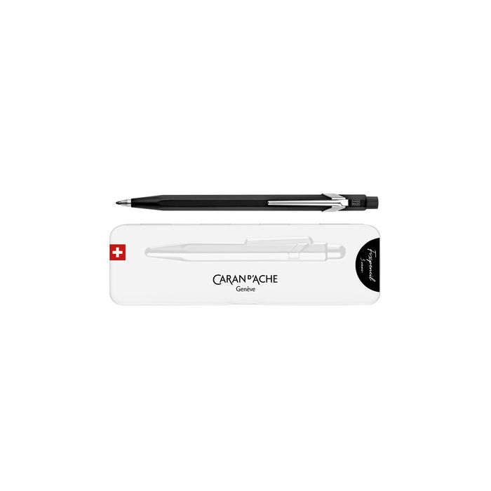 CARAN D'ACHE Porte-mines Fixpencil, diamètre de mine: 2 mm noir, longueur: 135 mm, corps hexagonal en aluminium, clip flexible, mécanisme à pince, taille-mine incorporé au bouton-poussoir, dans un étui en métal extra plat, fermeturemagnétique (22.509)