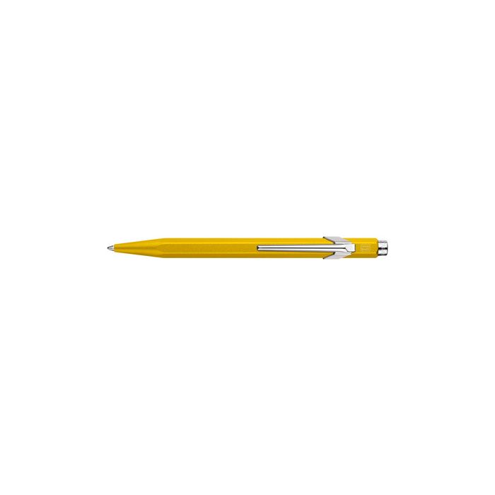 CARAN D'ACHE Stylo à bille 849 Colormat-X, jaune largeur de tracé: M, couleur de tracé: bleu, corps hexagonalen aluminium, clip flexible en métal, mécanisme rétractable,finition satinée premium, rechargeable avec la mine Goliath (849.243)