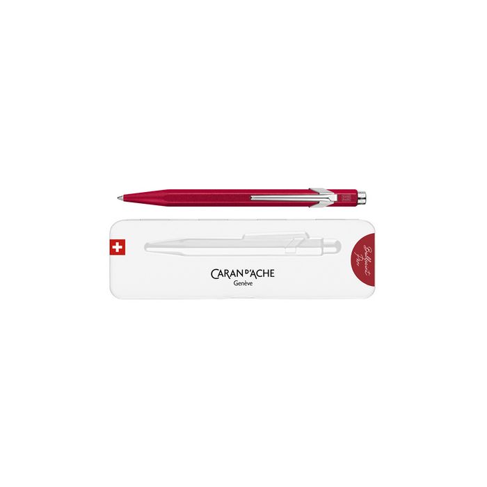 CARAN D'ACHE Stylo à bille 849 Colormat-X, rouge largeur de tracé: M, couleur de tracé: bleu, corps hexagonalen aluminium, clip flexible en métal, mécanisme rétractable,dans un étui métal extra plat, fermeture magnétique, finition satinée premium, rechargeable avec la mine Goliath (849.585)