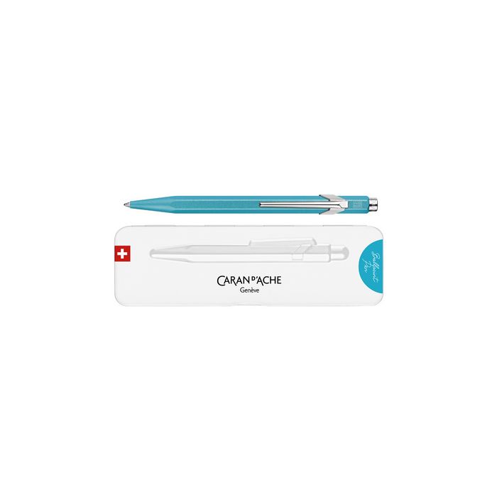 CARAN D'ACHE Stylo à bille 849 Colormat-X, turquoise largeur de tracé: M, couleur de tracé: bleu, corps hexagonalen aluminium, clip flexible en métal, mécanisme rétractable,dans un étui métal extra plat, fermeture magnétique, finition satinée premium, rechargeable avec la mine Goliath (849.681)