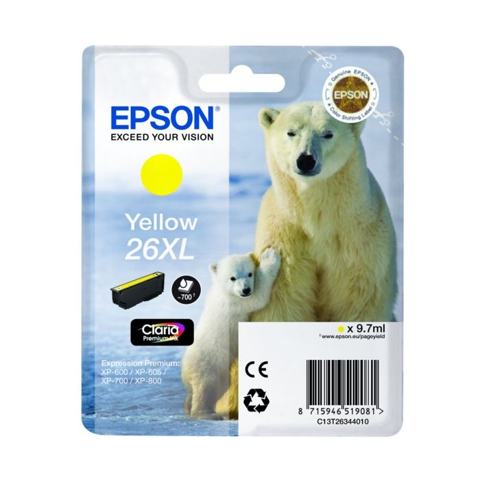 Cartouche d'origine Epson C13T26344012 / 26XL - jaune