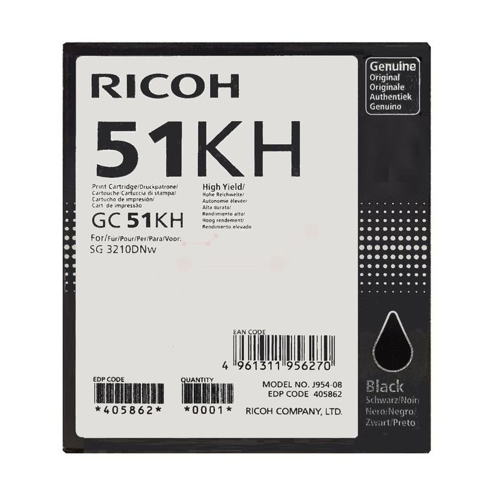 La Cartouche d'origine Ricoh 405862 / GC-51 KH - noire convient aux entreprises et collectivités en recherche des produits de la marque Ricoh.