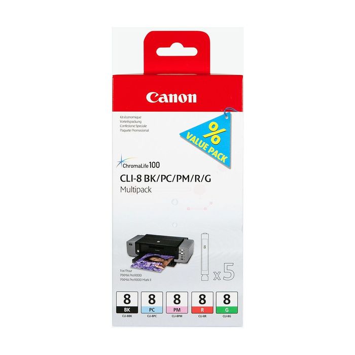 Cartouches d'origines Canon 0620B027 / CLI-8 - multipack 5 couleurs : noire, cyan photo, magenta photo, rouge, verte