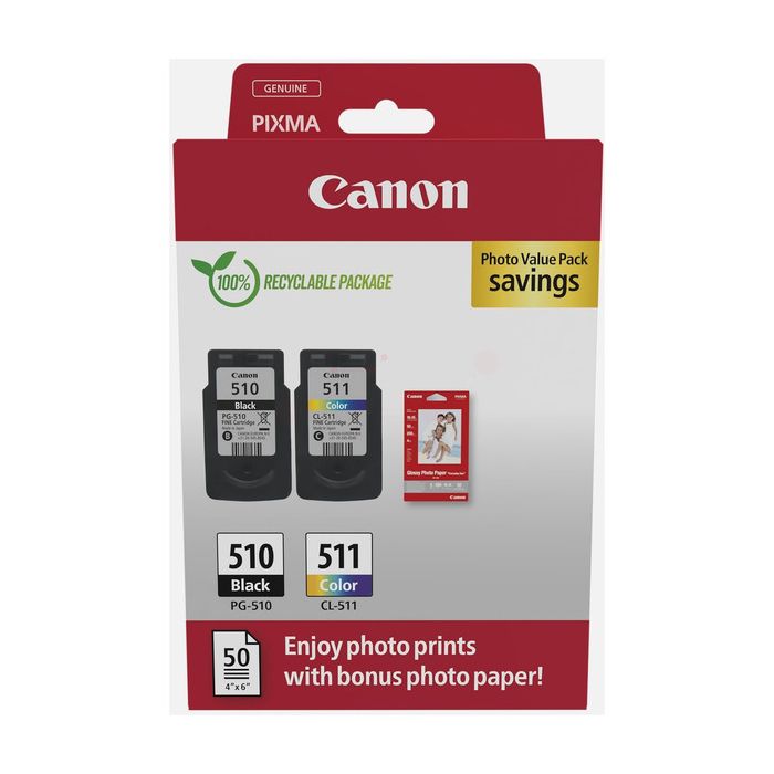 Cartouches d'origines Canon 2970B018 / PG-510+CL-511 - multipack 2 couleurs : noire, multicouleur