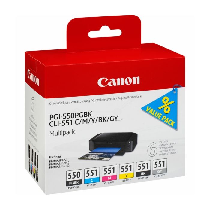 Les Cartouches d'origines Canon 6496 B 005 / PGI-550/CLI-551 - multipack 6 couleurs : noire, cyan, magenta, jaune, grise conviennent aux entreprises et collectivités en recherche des produits de la marque Canon.