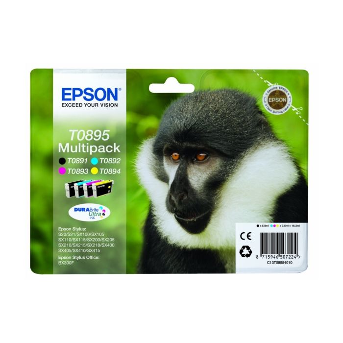 Les Cartouches d'origines Epson C 13 T 08954011 / T0895 - multipack 4 couleurs : noire, cyan, magenta, jaune conviennent aux entreprises et collectivités en recherche des produits de la marque Epson.