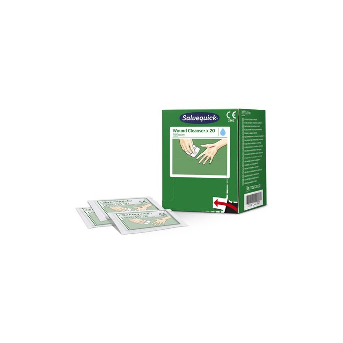 CEDERROTH Lingette antiseptique pour plaies Salvequick paquet de 20, avec solution saline stérile 0,9 %, emballage individuel, remplace efficacement le coton et les solutions de nettoyage de plaies, dimensions d'une lingette: 110 x 120 mm, contenu: 20 lingettes (323700)