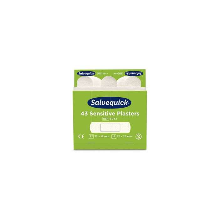 CEDERROTH Recharge Salvequick, pansement Sensitif pour allergiques, convient pour le distributeur de pansementSalvequick, assorti dans 2 tailles: 27 pièces en (l)72 x (L)19 mm, 16 pièces en (l)72 x (L)25 mm contenu: 6 x 43 pansements (6943)