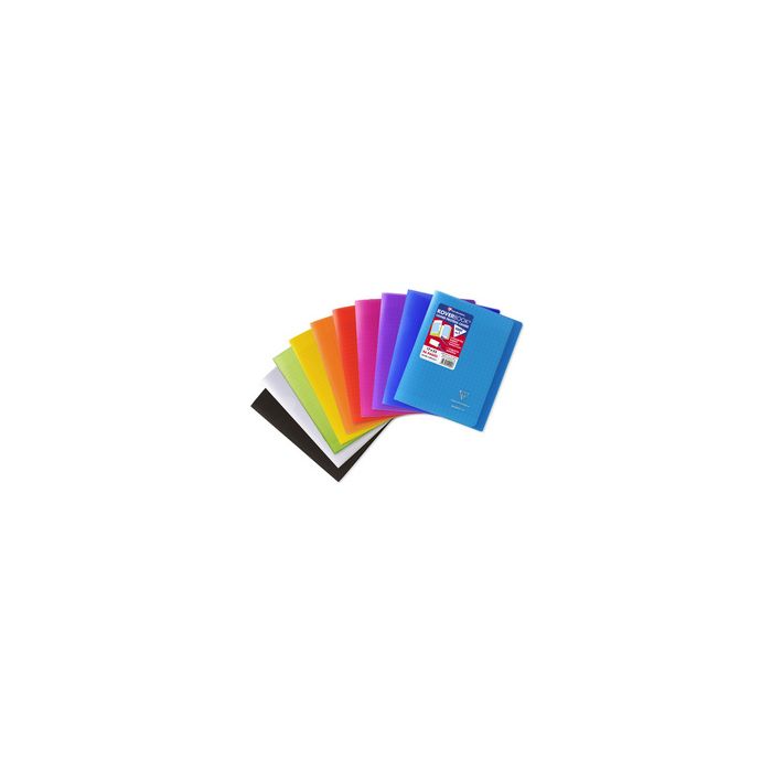 Clairefontaine Cahier Koverbook, 240 x 320 mm, quadrillé 96 pages, couverture polypropylène transparent, papier vélinvelin velouté 90 g, 2 rabats marque-pages avec pochette intégrée, étiquette adhésive, assorti en 10 couleurs en paquet de 30 pièces (981601C