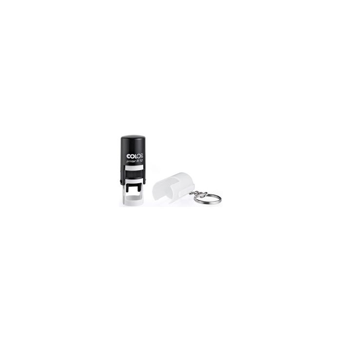 COLOP Tampon pour texte Printer R12, rond, noir incl. bon d'achat pour créer une plaque texte personnalisée,empreinte ronde, 2 lignes max., taille de l'empreinte: diamètre: 12 mm, encrage automatique, incl. cassette noire, incl. couvercle et porte-clé (151420)