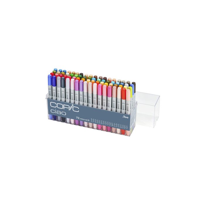 COPIC Hobbymarker ciao, set B de 72 encre à base d'eau, séchage rapide, miscible entre elle, rechargeable avec encre de recharge Various Ink, Inhalt: 72 pièces en couleurs assorties (22075161) BV13/BV17/BV23/BV29/BV31/V000/V06/V15/V91/V95/RV000/RV06/ RV13/RV34/RV95/R00/R05/R11/R17/R22/R35/R37/R46/R85/YR16/ YR23/YR31/YR61/YR68/Y11/Y15/Y21/Y28/Y38/YG00/YG23/YG63/ YG91/YG95/G000/G07/G14/G28/G85/G94/BG05/BG34/BG49/BG96/B02/ B12/B45/B60/B63/B93/B95/B97/E11/E31/E43/E49/E50/E53/E57/E71/E77/E93/E95/W1/W3/W5/W7