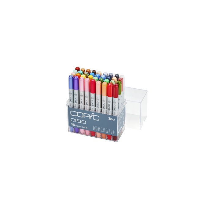 COPIC Marker ciao, 36er Set B Tinte auf Alkoholbasis, schnell trocknend, untereinander mischbar, nachfüllbar mit den Various Ink Nachfülltinten, beinhaltet: 36 Marker farbig sortiert (22075362) E08/BG10/YR00/BV04/E33/BG15/YR04/V17/E35/BG93/Y02/RV21/E47/ B05/Y08/RV23/E51/B23/YG41/RV29/B32/YG67/RV42/B39/G02/R02/ E02/G21/R27/E04/G99/R59/C1/C5/C7/0