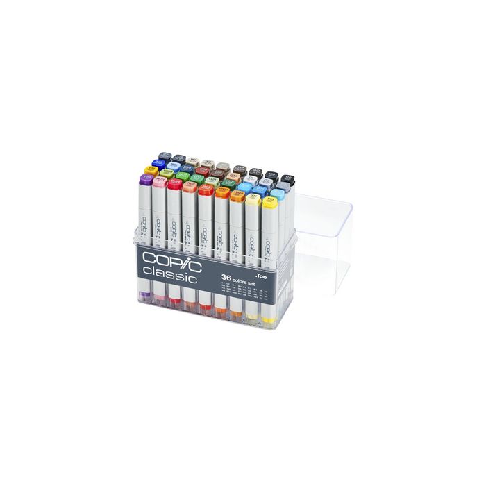 COPIC Marqueur classic, set de base de 36 pièces encre à base d'alcool, sèche rapidement, les marqueurs sont miscibles entre eux, rechargeable avec la cartouche de recharge Various Ink, contenu: 36 pièces couleurs assorties (20075158) C7/C9/W1/W3/W5/W7/W9/100/110/B29/B32/B39/E09/E29/E33/ C1/C3/C5/Y15/YG03/G07/G17/G21/G28/B05/B06/B14/V09/RV11/ RV29/R02/R08/YR04/YR24/Y11/Y13