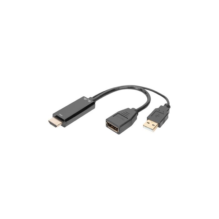 DIGITUS Adaptateur HDMI 4K vers DisplayPort, 0,2 m, noir pour connecter un ordinateur portable à 2 écrans, fiche mâleHDMI de type A - fiche mâle DisplayPort - fiche mâle USB-A (AK-330101-002-S)