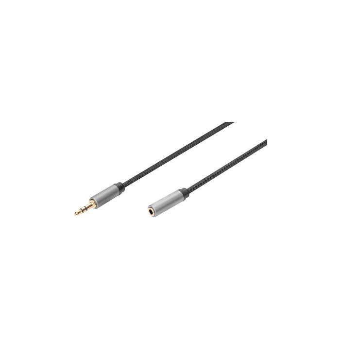 DIGITUS Câble d'extension audio, jack mâle 3,5 mm, 3,0 m fiche Jack 3,5 mm - prise Jack 3,5 mm, extension pour câble jack mâle de 3,5 mm (aux), connecteurs plaqués or, tresse nylon, AWG: 28, couleur: noir/gris (DB-510210-030-S)